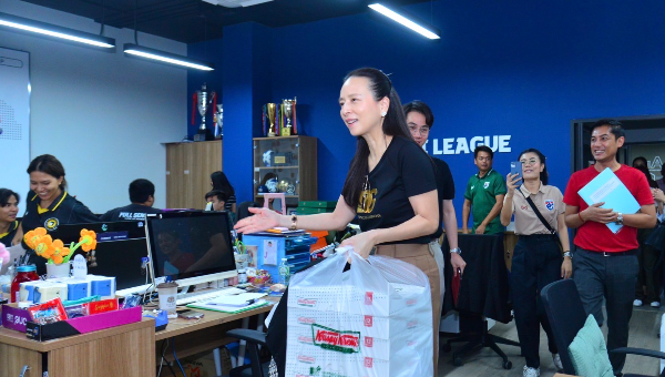 “มาดามแป้ง” นวลพรรณ ล่ำซำ นายกสมาคมกีฬาฟุตบอลฯ เดินทางมาที่อาคาร House of Thai Football สมาคมฯ เมื่อช่วงเช้า วันที่ 14 กุมภาพันธ์ 2567 เพื่อมาเยี่ยมเยียน และ ให้กำลังใจเจ้าหน้าที่ของ สมาคมฯ ทั้งฝั่งของ ทีมชาติไทย และ ไทยลีก