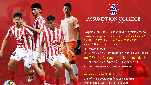 โรงเรียนอัสสัมชัญ เปิดคัดนักเตะเข้าเรียนชั้น ม.4 และ ม.5