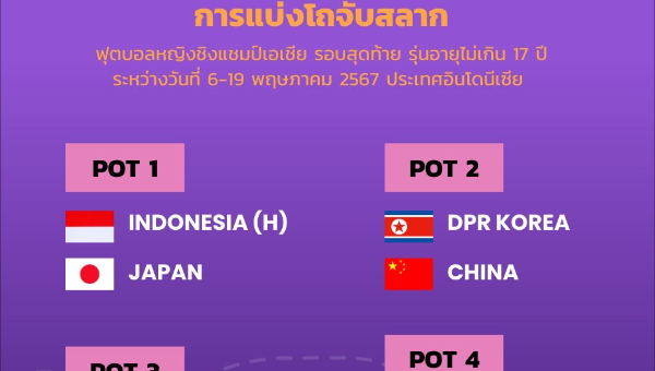 สมาพันธ์ฟุตบอลแห่งเอเชีย หรือ เอเอฟซี ส่งหนังสือยืนยันการจัดพิธีจับสลากการแข่งขันฟุตบอลหญิงชิงแชมป์เอเชีย รอบสุดท้าย รุ่นอายุไม่เกิน 17 ปี ที่ บาหลี ประเทศอินโดนีเซีย ระหว่างวันที่ 6-19 พฤษภาคม 2567