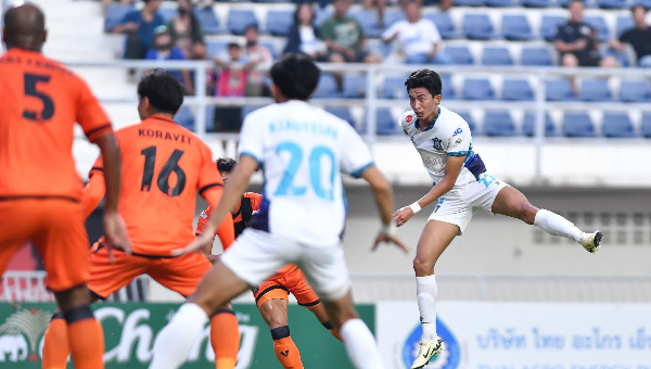 น.16 ยูกิ บัมบะ สบโอกาสยิงด้วยซ้ายริมเขตโทษ บอลตรงตัวอิทธิพล สามนาทีต่อมา กุสตาโว่ รับบอลโหม่งเช็ดจาก บัมบะ แล้วหลุดเข้าไปในเขต ก่อนยิงไปติดบล็อค ปิยะชนก อย่างหวุดหวิด