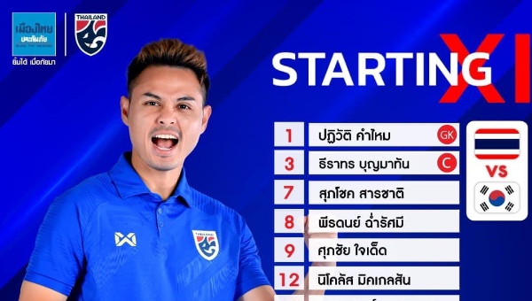 รายชื่อ 11 ผู้เล่นตัวจริงทีมชาติไทย ศึกฟุตบอลโลก 2026 รอบคัดเลือก โซนเอเชีย รอบสอง กลุ่ม ซี นัดที่ 4 ไทย พบ เกาหลีใต้