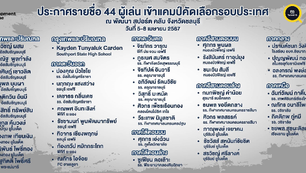 ซึ่งที่ผ่านมาทางสมาคมกีฬาฟุตบอลแห่งประเทศไทยฯร่วมกับ สหพันธ์ฟุตบอลนานาชาติ (FIFA)ได้จัดกิจกรรม “FA Thailand Talent ID” เพื่อเฟ้นหานักกีฬาดาวรุ่งสู่ฐานข้อมูลทีมชาติไทย รุ่นอายุไม่เกิน 17 ปี ได้เดินทางไปคัดเลือกนักกีฬา ทั้งหมด 10 โซน โซนละ 2 ครั้ง และได้นักกีฬาทั้งหมด 44 ราย ดังมีรายชื่อต่อไป