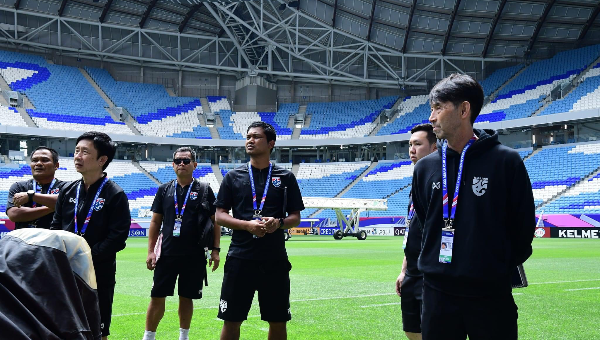 อิสสระ ศรีทะโร หัวหน้าผู้ฝึกสอนทีมชาติไทย U23 และ มาซาทาดะ อิชิอิ ที่ปรึกษาทีม พร้อมทีมงานสตาฟฟ์โค้ช ตรวจสภาพความพร้อมของ อัล ยานูบ สเตเดียม สนามที่ ทีมชาติไทย U23 จะทำการแข่งขัน AFC U23 Asian Cup 2024 นัดแรกที่จะพบกับ อิรัก ในวันที่ 16 เมษายนนี้ ถ่ายทอดสดทาง ทรูวิชั่นส์ True Sport 2 ช่อง 667