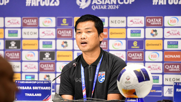 ณ ห้องแถลงข่าว คอลิฟา อินเตอร์เนชันแนล สเตเดียม สมาพันธ์ฟุตบอลแห่งเอเชีย หรือ เอเอฟซี จัดงานแถลงข่าวก่อนการแข่งขันฟุตบอล AFC U23 Asian Cup QATAR 2024 กลุ่มซี
