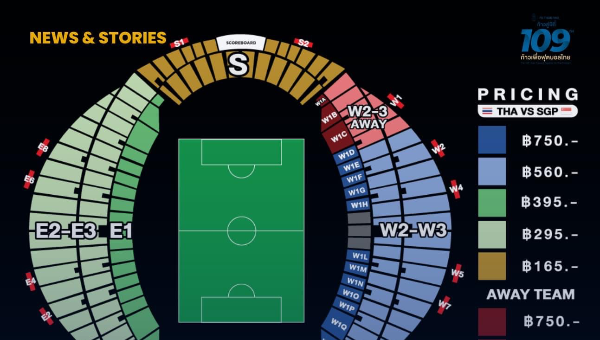 เปิดจำหน่ายบัตรบุคคลทั่วไป 1 Matches Pass  (ไทย-สิงคโปร์) เปิดขายวันพุธที่ 8 พฤษภาคม 2567 เวลา 10:00 น. เป็นต้นไป