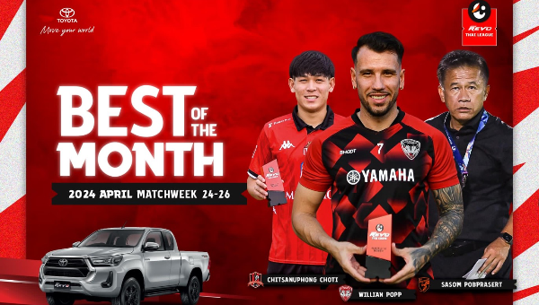 โค้ชเตี้ย ควง วิลเลียน พ็อพพ์ คว้ารางวัลยอดเยี่ยมไทยลีกประจำเดือนเมษายน