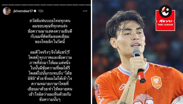 อย่างไรก็ตามหนึ่งในการรีโพสต์นั้นดันมีข้อความกระทบถึงโค้ชอิชิอิหัวหน้าผู้ฝึกสอนทีมชาติไทย