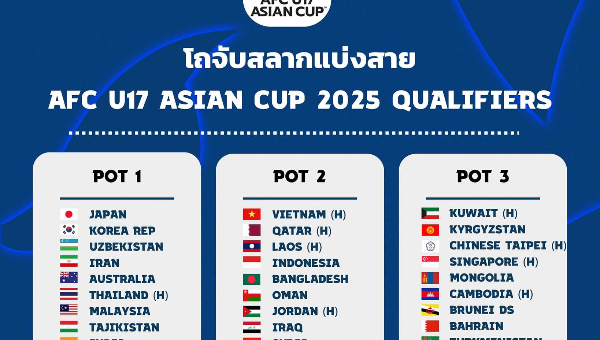 สมาพันธ์ฟุตบอลแห่งเอเชีย หรือ เอเอฟซี แจ้งผลการแบ่งโถ การจับสลาก แบ่งสายการแข่งขันฟุตบอลชิงแชมป์เอเชีย รุ่นอายุไม่เกิน 17 ปี รอบคัดเลือก ซึ่งจะมีการจับสลากในวันที่ 13 มิถุนายน 2567