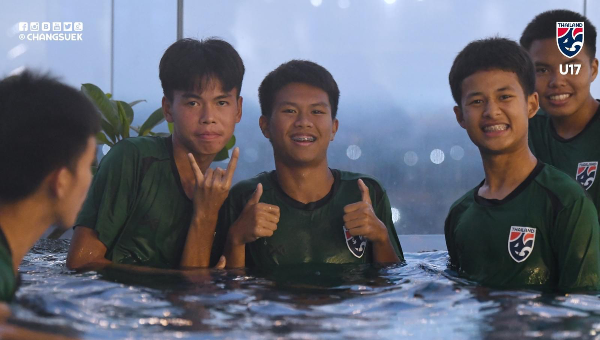 ช้างศึก U17 ฟื้นฟูร่างกายในสระว่ายน้ำเพื่อเตรียมเจอกับ มาเลเซีย