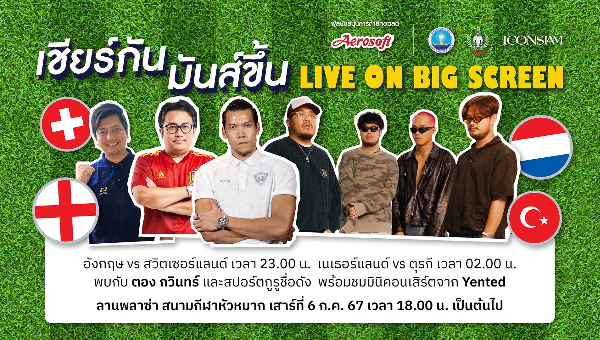 ซึ่งกิจกรรม ‘เชียร์กัน มันส์ขึ้น ศึกฟุตบอลยุโรป 2024 LIVE ON BIG SCREEN’ เดินทางมาถึงสัปดาห์ที่ 2 เข้าสู่รอบ 8 ทีมสุดท้าย ในวันเสาร์ที่ 6 ก.ค. 67 นำทัพเชียร์โดย ‘ตอง’ กวินทร์ ธรรมสัจจานันท์ นักฟุตบอลทีมชาติไทย ร่วมด้วยนักพากย์ อินฟลูเอนเซอร์ และศิลปินชื่อดัง ที่จะมาสร้างสีสันให้การเชียร์บอลสนุกมากขึ้นกว่าเดิม ณ ลานพลาซ่า สนามกีฬาหัวหมาก 18:00 น. เป็นต้นไป และยังเอาใจคอบอลด้วยกิจกรรมสุดพิเศษมากมายอย่างต่อเนื่อง