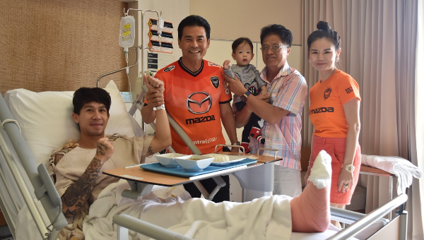 บิ๊กบอสใหญ่สวาทแคทกล่าวหลังเดินทางมาเยี่ยมแข้งตัวเก่งว่า “เดิมทีเราจะให้ทำการผ่าตัดที่โคราช แต่ได้ปรึกษาหมอที่ศิริราชแล้ว เราจึงคิดว่ามาผ่าที่นี่น่าจะได้รับความสะดวกมากกว่า เพราะทั้งประสบการณ์และเครื่องมือทุกอย่างมีครบครัน”
