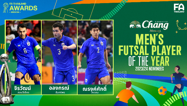 "จิรวัฒน์-อลงกรณ์-ณรงค์ศักดิ์" ลุ้นรางวัลนักฟุตซอลไทยยอดเยี่ยมแห่งปี CHANG MEN'S FUTSAL PLAYER OF THE YEAR 2023/24