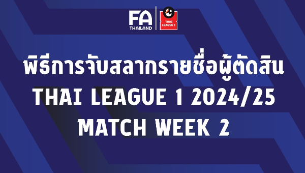 ฝ่ายพัฒนาผู้ตัดสิน สมาคมกีฬาฟุตบอลแห่งประเทศไทย ในพระบรมราชูปถัมภ์ ประกาศรายชื่อผู้ตัดสินที่จะปฏิบัติหน้าที่ในการแข่งขันฟุตบอล ไทยลีก 1 ฤดูกาล 2024/25 แมตช์เดย์ที่ 2 หลังการจับสลากผู้ตัดสินสุ่มแบบ Random เพื่อความโปร่งใส และ เห็นพร้อมกันทั่วประเทศ ผ่านการถ่ายทอดสดบนแฟนเพจ ไทยลีก 1 และ FA THAILAND เสร็จสิ้นเป็นที่เรียบร้อยแล้ว