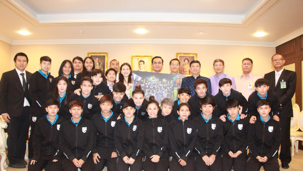 "มาดามแป้ง" นวลพรรณ ล่ำซำ ผู้จัดการทีมฟุตบอลหญิงทีมชาติไทย ชุดใหญ่ นำคณะนักกีฬาและผู้ฝึกสอนเข้าคารวะนายกรัฐมนตรี ที่ทำเนียบรัฐบาล