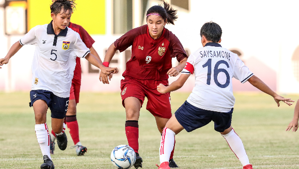 นาทีที่ 22 ทีมชาติไทย ได้ลุ้นประตูจากฟรีคิก สุชาดา คำเจริญ รับหน้าที่ยิง แต่บอลโดนผู้รักษาประตู สปป.ลาว เซฟไว้ได้