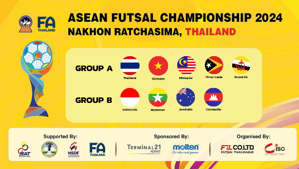 ฟุตซอลไทย ร่วมสาย เวียดนาม, มาเลเซีย, ติมอร์ เลสเต, บรูไน ศึกชิงแชมป์อาเซียน 2024