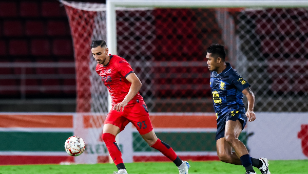 นาทีที่ 14 พีระพัฒน์ เปิดบอลทางฝั่งซ้ายให้ มาห์มูด เอด ขึ้นโหม่ง บอลยังติดกองหลังทีมเยือน