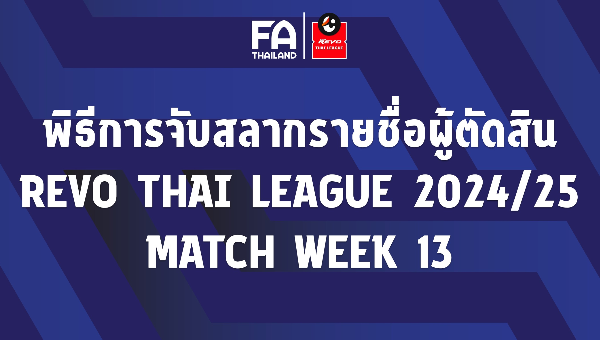 ประกาศ : รายชื่อ "ผู้ตัดสิน" ปฏิบัติหน้าที่ในการแข่งขันฟุตบอล รีโว่ ไทยลีก ฤดูกาล 2024/25 แมตช์เดย์ที่ 13