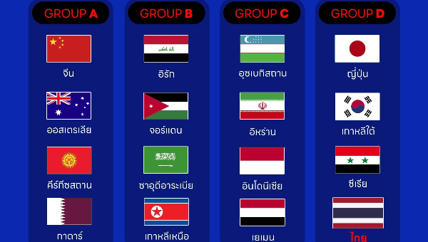 ทีมชาติไทย U20 อยู่ร่วมสาย ญี่ปุ่น, เกาหลีใต้, ซีเรีย ศึกชิงแชมป์เอเชีย รอบสุดท้าย ที่ประเทศจีน