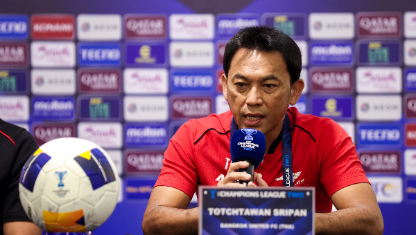 ณ ห้องแถลงข่าว โรงแรมแกรนด์ เมอร์เคียว ร็อกซี่ ประเทศสิงคโปร์ “โค้ชแบน” ธชตวัน ศรีปาน และ ริไชโร ซิฟโควิช ในฐานะตัวแทนของสโมสรทรู แบงค็อก ยูไนเต็ด เข้าร่วมแถลงข่าวก่อนเกมการแข่งขัน ฟุตบอลเอเอฟซี แชมเปียนส์ ลีก ทู 2024/25 รอบแบ่งกลุ่ม ของกลุ่ม G นัดที่ห้า พบกับ เทมปิเนส โรเวอร์ส ตัวแทนจากสิงคโปร์ ในวันพรุ่งนี้