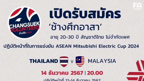 ประกาศ : รับสมัคร "อาสาสมัคร" ช่วยทีมชาติไทย ลุยศึก อาเซียนคัพ 2024