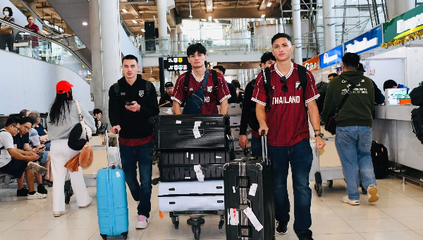ณ ท่าอากาศยานนานาสุวรรณภูมิ ฟุตบอลชายทีมชาติไทย เดินทางกลับถึงประเทศไทยเป็นที่เรียบร้อยแล้ว หลังเสร็จภารกิจการแข่งขันฟุตบอลชิงแชมป์อาเซียน 2024 หรือ ASEAN Mitsubishi Electric Cup 2024 รอบรองชนะเลิศ นัดแรก กับทีมชาติฟิลิปปินส์