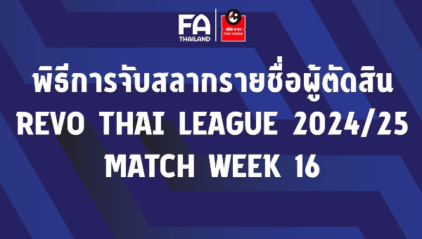 ประกาศ : รายชื่อ "ผู้ตัดสิน" ปฏิบัติหน้าที่ในการแข่งขันฟุตบอล รีโว่ ไทยลีก ฤดูกาล 2024/25 แมตช์เดย์ที่ 16