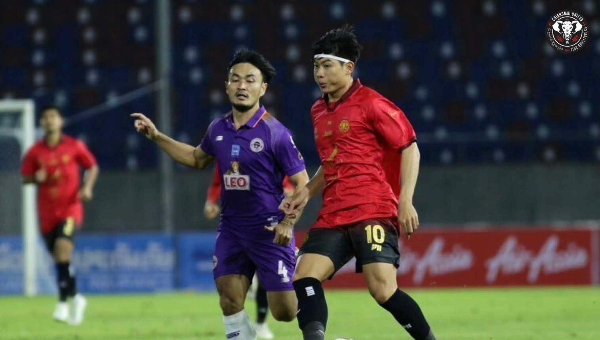 น.75 นัฐวุฒิ กองหน้าป้ายแดงช้างเผือก เก็บบอลจังหวะสองได้ ก่อนจ่ายให้ นุรูล โฉบตัดเข้าในแต่ยิงข้ามคาน