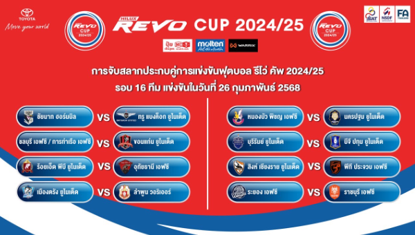 ผลการจับสลากประกบคู่ ฟุตบอล รีโว่ คัพ 2024/25 รอบ 16 ทีม มีดังนี้
