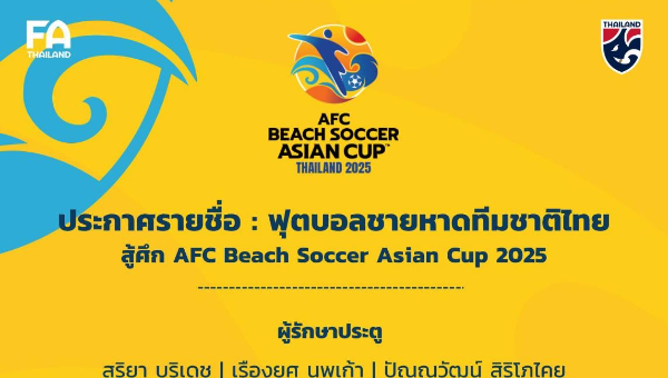 ประกาศ : รายชื่อ 14 แข้ง ฟุตบอลชายหาดทีมชาติไทย ชุดสู้ศึก AFC Beach Soccer Asian Cup 2025