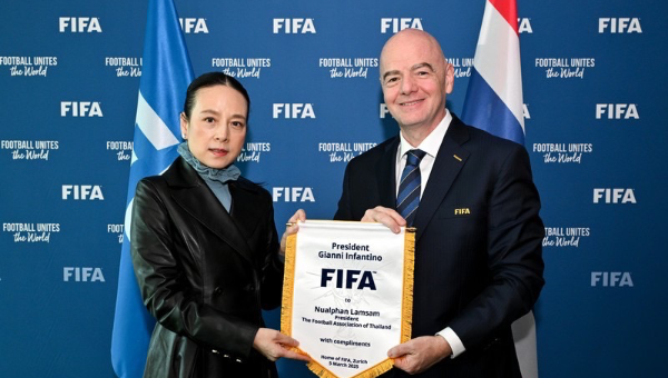 สำหรับ  “มาดามแป้ง” นวลพรรณ ล่ำซำ นายกสมาคมกีฬาฟุตบอลแห่งประเทศไทยฯ เพิ่งมีโอกาสพบกับ จานนี อินฟานติโน ประธานฟีฟ่า ที่กรุงโดฮา ประเทศกาตาร์ หลังได้รับคำเชิญในฐานะแขกของ ฟีฟ่า เข้าร่วมชมการแข่งขัน ฟุตบอลชิงแชมป์สโมสรโลก 2024 รอบชิงชนะเลิศ เมื่อช่วงเดือนธันวาคม 2567  รวมถึงครั้งนี้ ยังถูกเชิญ ให้เดินทางมาชม การแข่งขันฟุตบอลชิงแชมป์สโมสรโลก 2025 เช่นกัน ที่จะจัดขึ้นประเทศสหรัฐอเมริกา ระหว่างวันที่ 15 มิถุนายน - วันที่ 13 กรกฎาคม ปี 2568