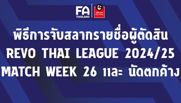 หลังการจับสลากผู้ตัดสินสุ่มแบบ Random เพื่อความโปร่งใส และ เห็นพร้อมกันทั่วประเทศ ผ่านการถ่ายทอดสดบนแฟนเพจ ไทยลีก 1 และ FA THAILAND เสร็จสิ้นเป็นที่เรียบร้อยแล้ว