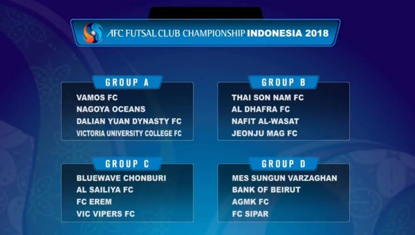 ผลจับสลากแบ่งสาย ศึก ฟุตซอล ชิงแชมป์สโมสร เอเชีย ครั้งที่ 9 หรือ “AFC Futsal Club Championship 2018” ที่เมือง ยอร์กยากาต้า ประเทศ อินโดนีเซีย เมื่อเวลา 10.30 น. ที่ผ่านมา (18.พ.ค.)