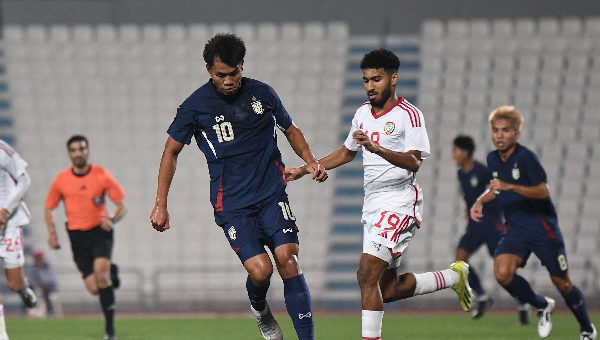 ทดเจ็บจากลูกเตะมุม เป็นภัทรพล ศึกษากิจ ที่ได้สอดเข้าไปโขก แต่ยังติดเซฟของประตูยูเออี และจบครึ่งแรก เสมอกัน 0-0