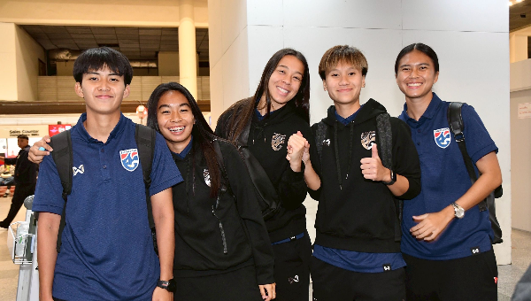 ณ ท่าอากาศยานนานาชาติดอนเมือง ฟุตบอลหญิงทีมชาติไทย เตรียมออกเดินทางไปยัง เมืองฉงชิ่ง สาธารณรัฐประชาชนจีน เพื่อเข้าร่วมการแข่งขันรายการ CFA Team China International Women’s Football Championship Yongchuan 2025 ระหว่างวันที่ 3-9 เมษายน 2568