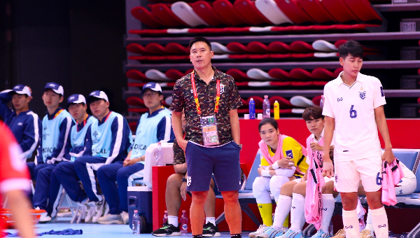 ธนาธร สันทนาประสิทธิ์ หัวหน้าผู้ฝึกสอน ฟุตซอลหญิงทีมชาติไทย ให้สัมภาษณ์หลังการแข่งขันฟุตซอล AFC Women's Futsal Asian Cup 2025 กลุ่มซี นัดที่สอง