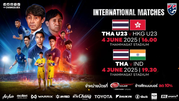 ไทย ทิคเกต เมเจอร์ เตรียมเปิดขายบัตร เกม ทีมชาติไทย และ ทีมชาติไทย U23 ลงอุ่นเครื่อง ในวันที่ 4 มิถุนายน 2568 โดย ทีมชาติชุดใหญ่ จะมีโปรแกรมพบกับ อินเดีย และ ทีมชาติ U23 จะพบกับ ฮ่องกง U23