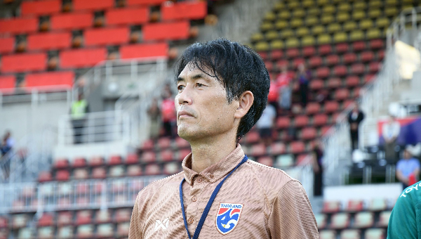 ฟูโตชิ อิเคดะ หัวหน้าผู้ฝึกสอน ฟุตบอลหญิงทีมชาติไทย ให้สัมภาษณ์หลังการแข่งขันฟุตบอลอุ่นเครื่องนัดพิเศษ ที่ ธรรมศาสตร์ สเตเดียม เมื่อวันที่ 2 มิถุนายน 2568