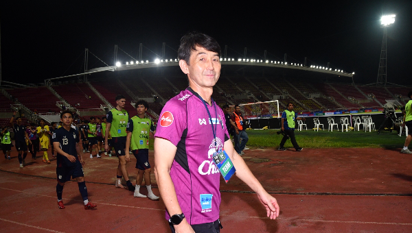 มาซาทาดะ อิชิอิ หัวหน้าผู้ฝึกสอน ฟุตบอลชายทีมชาติไทย ให้สัมภาษณ์หลังการแข่งขันฟุตบอลอุ่นเครื่องตามปฏิทิน ฟีฟ่า เดย์ ที่ ธรรมศาสตร์ สเตเดียม เมื่อวันที่ 4 มิถุนายน 2568