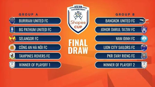 กลุ่ม เอ : กลุ่ม เอ : บุรีรัมย์ ยูไนเต็ด (ไทย), บีจี ปทุม ยูไนเต็ด (ไทย), สลังงอร์ (มาเลเซีย), กง อัน ฮานอย (เวียดนาม) บีจี แทมปิเนส โรเวอร์ส เอฟซี (สิงคโปร์), ผู้ชนะเพลย์ออฟ 1