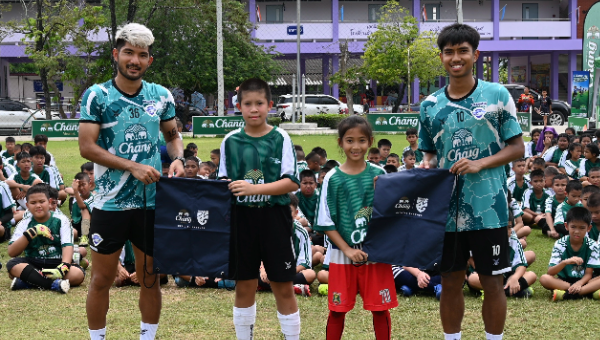 "น้ำแร่ธรรมชาติตราช้าง" ชวน "ชลบุรี เอฟซี" - "หนึ่ง" ชาญณรงค์ "เต้" ธนาเสฏฐ์ ลงสนามสอนฟุตบอล "Chang Mobile Football Clinic 2025" ที่สนามฟุตบอลโรงเรียนวัดโป่งตามุข จ.ชลบุรี