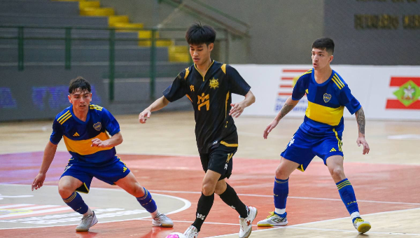 การแข่งขัน ฟุตซอลนานาชาติ COPA MUNDO DO FUTSAL MASCULINA U-19 (Futsal World Cup U-19 ณ  ยิมเนเซียม เมืองบลูเมเนา รัฐซานตากาตารีนา ประเทศบราซิล เมื่อวันที่ 15 กันยายน 2568 เกมในกลุ่ม A นัดแรก ระหว่าง สโมสร IMANE Blackpearl United ตัวแทนจากประเทศไทย พบกับ Boca Juniors ทีมแกร่งจากประเทศอาร์เจนตินา
