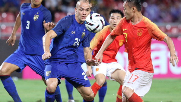 ทีมชาติไทย เจาะแนวรับของทีมจากแดนมังกรไม่ได้ ก่อนโดดทีเด็ดของ อู่ เล่ย ที่เหมาคนเดียวสองประตู