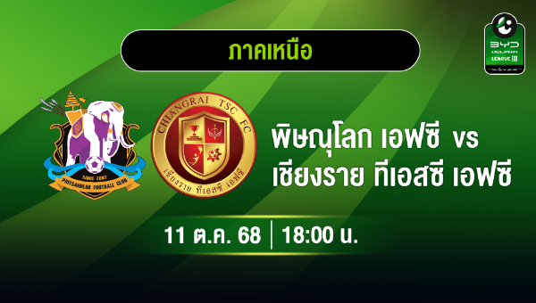 18.00 น. พิษณุโลก เอฟซี พบ เชียงราย ทีเอสซี เอฟซี : PLAY SPORTS25