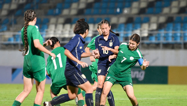 ณ ชลบุรี สเตเดียม การแข่งขันฟุตบอลหญิงชิงแชมป์เอเชีย รุ่นอายุไม่เกิน 17 ปี รอบคัดเลือก กลุ่มเอฟ นัดแรก ฟุตบอลหญิงทีมชาติไทยรุ่นอายุไม่เกิน 17 ปี ลงสนาม พบกับ ทีมชาติเติร์กเมนิสถาน