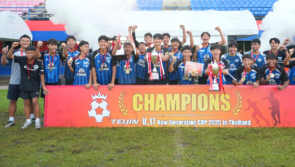 ศึกฟุตบอลเยาวชนนานาชาติ “TEIJIN U-17 New Generation Cup 2025 ประเทศไทย” (เทยิน   ยู-17 นิว เจเนอเรชัน คัพ 2025 ประเทศไทย) ปิดฉากลงอย่างเร้าใจ เมื่อทีมท่าข้าม ชลบุรี เอฟซี โชว์ฟอร์มเด่นเฉือนเอาชนะ พีวีเอฟ เวียดนาม ไปอย่างสุดมันส์ด้วยสกอร์ 2 – 1 ในช่วงต่อเวลาพิเศษ คว้าแชมป์ไปครองท่ามกลางเสียงเชียร์กระหึ่ม ณ ธนบุรี สเตเดี้ยม