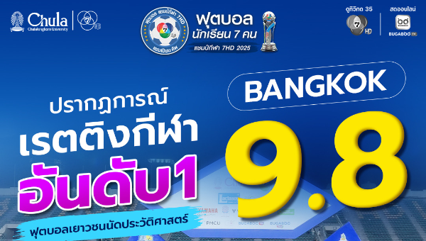 ทุบทุกสถิติ ! ช่อง 7HD คว้าเรตติง อันดับ 1 ถ่ายทอดสด "แชมป์กีฬา 7HD แชมเปียน คัพ 2025" การแข่งขันฟุตบอลนักเรียน 7 คน ครองใจแฟนกีฬาและคนไทยทั้งประเทศ เรตติงกลุ่มผู้ชมในเขตกรุงเทพถล่มทลายถึง 9.8 ขณะที่ 15+ ทั่วประเทศได้สูงถึง 7.4 ส่วนทั่วประเทศคว้า 7.1