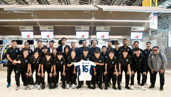 ณ ท่าอากาศยานนานาชาติสุวรรณภูมิ ฟุตซอลหญิงทีมชาติไทย รวมตัวกันออกเดินทางไปยัง กรุงมะนิลา ประเทศฟิลิปปินส์ เพื่อเตรียมความพร้อมก่อนเข้าร่วมการแข่งขัน ฟุตซอลหญิงชิงแชมป์โลก 2025 (FIFA Futsal Women’s World Cup 2025) ระหว่างวันที่ 21 พฤศจิกายน – 7 ธันวาคม 2568