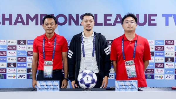ณ ห้องแถลงข่าวสนามเกโลรา บันดุง สเตเดี้ยม ประเทศอินโดนีเซีย “โค้ชแบน” ธชตวัน ศรีปาน และ อิเลียส อัลฮาฟท์ ในฐานะตัวแทนของสโมสรทรู แบงค็อก ยูไนเต็ด เข้าร่วมแถลงข่าวก่อนเกม เอเอฟซี แชมเปียนส์ ลีก ทู 2025/26 รอบแบ่งกลุ่ม นัดที่ 6 ของกลุ่ม G ทรู แบงค็อก ยูไนเต็ด บุกไปเยือน เปอร์ซิบ บันดุง ตัวแทนจากประเทศอินโดนีเซีย ในวันพรุ่งนี้