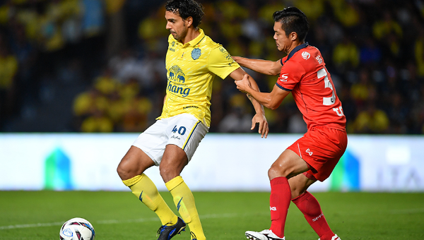 นาทีที่ 37 ปราสาทสายฟ้า มาได้ฟรีคิกระยะน่าลุ้นหน้าเขตโทษเยื้องมาทางขวา ดิโอโก หลุยส์ ซานโต วิ่งเข้าไปยิงบอลพุ่งไปตรงตัว สินทวีชัย หทัยรัตนกุล ที่ยืนถูกที่รับบอลไว้ได้